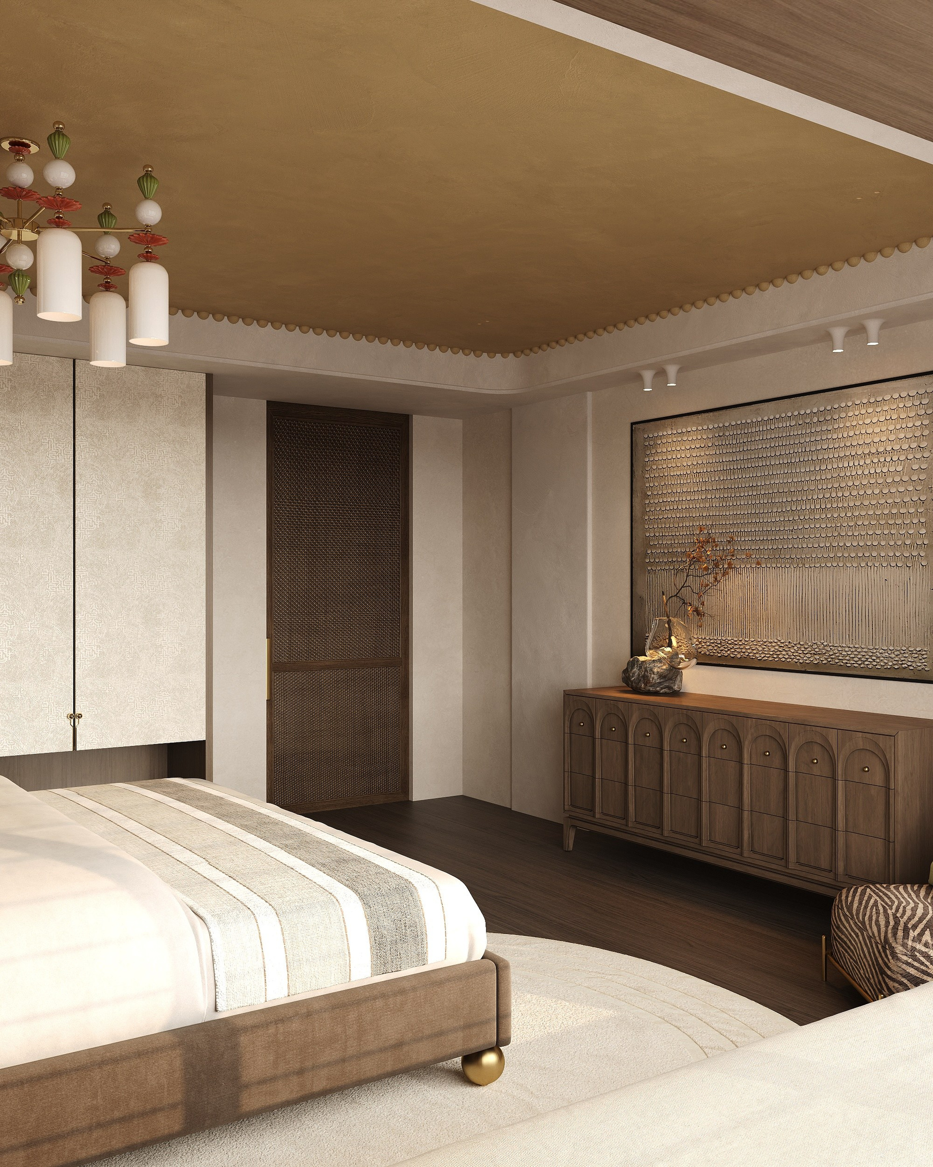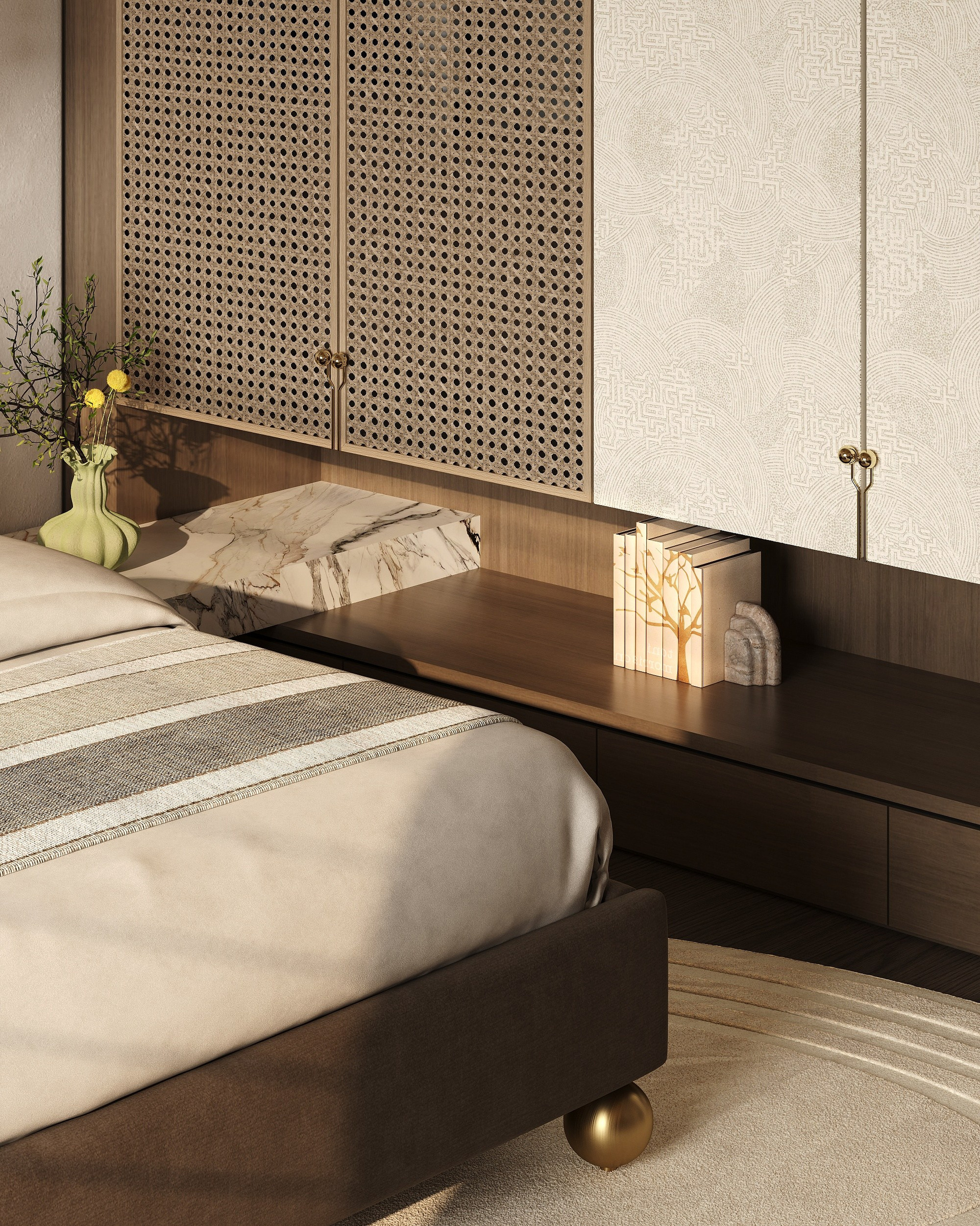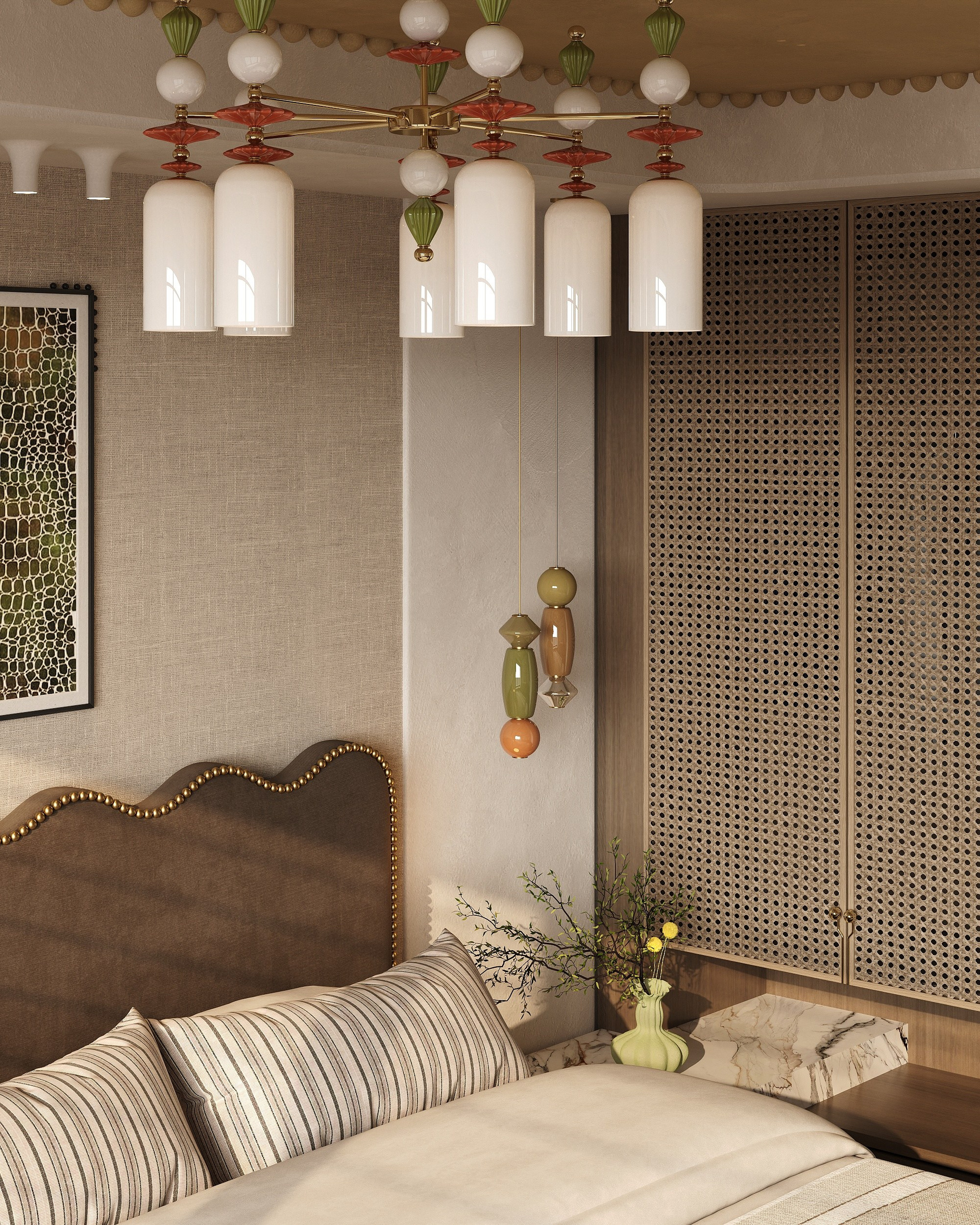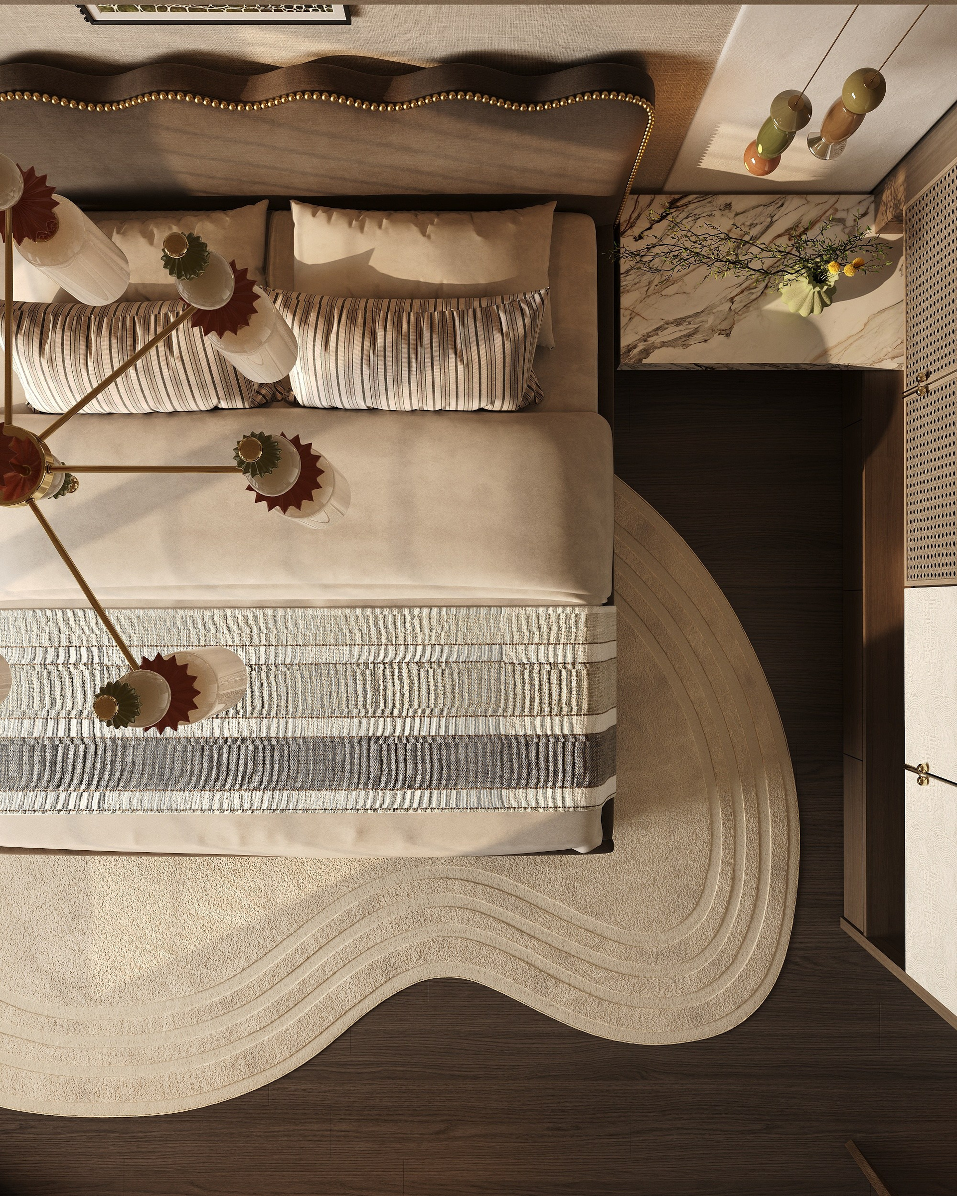 Bedroom interior in the spirit of neoclassicism and minimalism