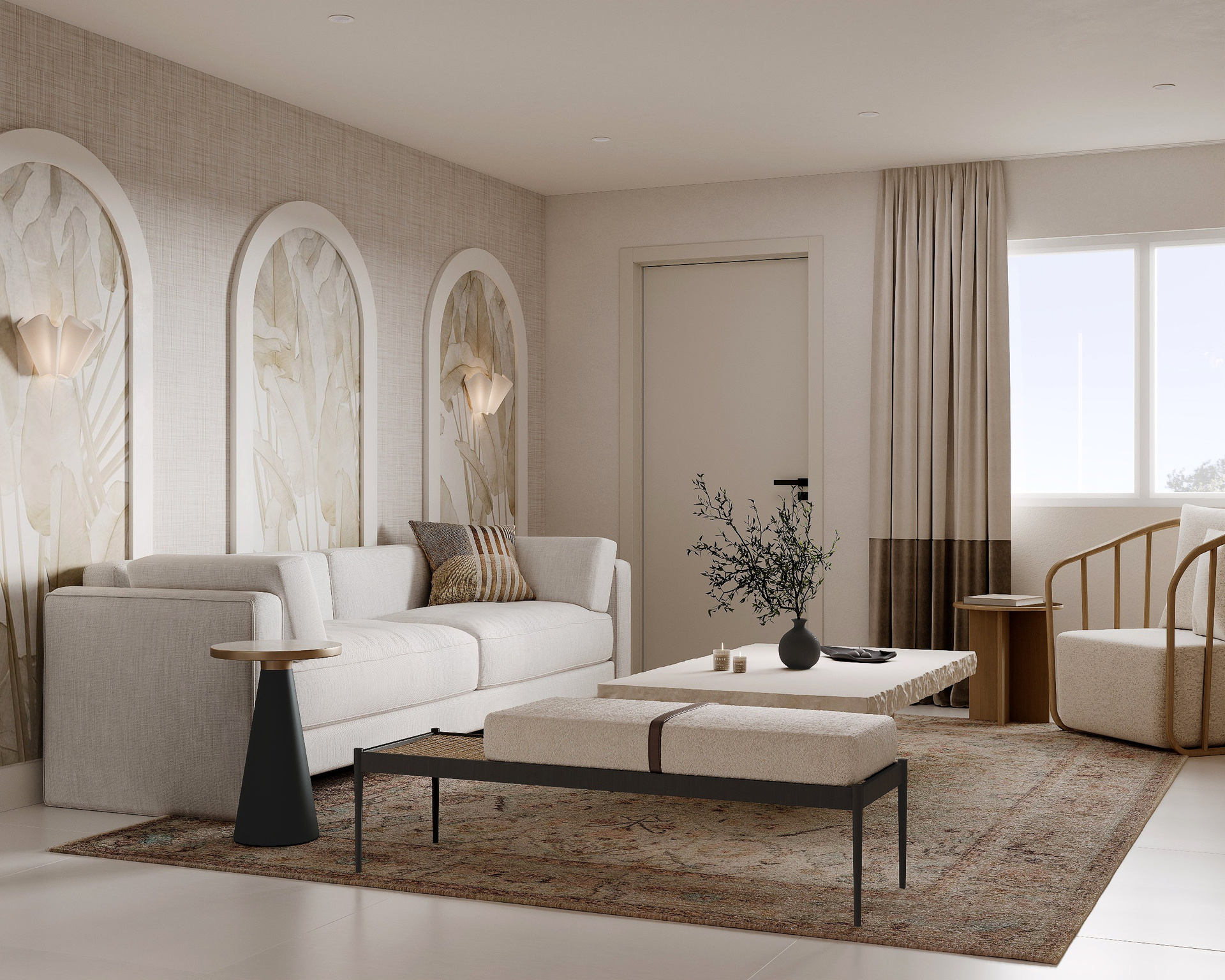 Bedroom interior in the spirit of neoclassicism and minimalism