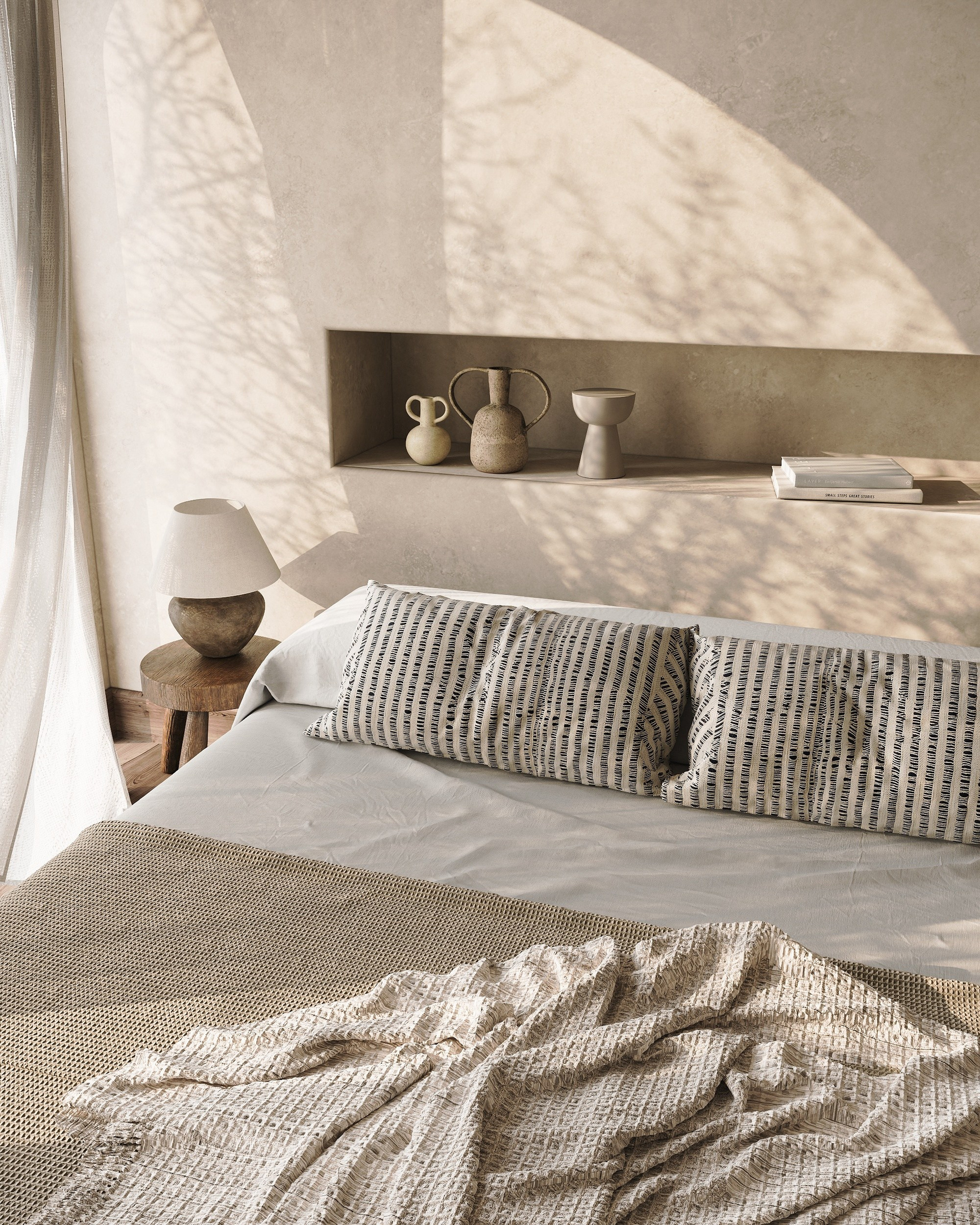 Bedroom interior in the spirit of neoclassicism and minimalism