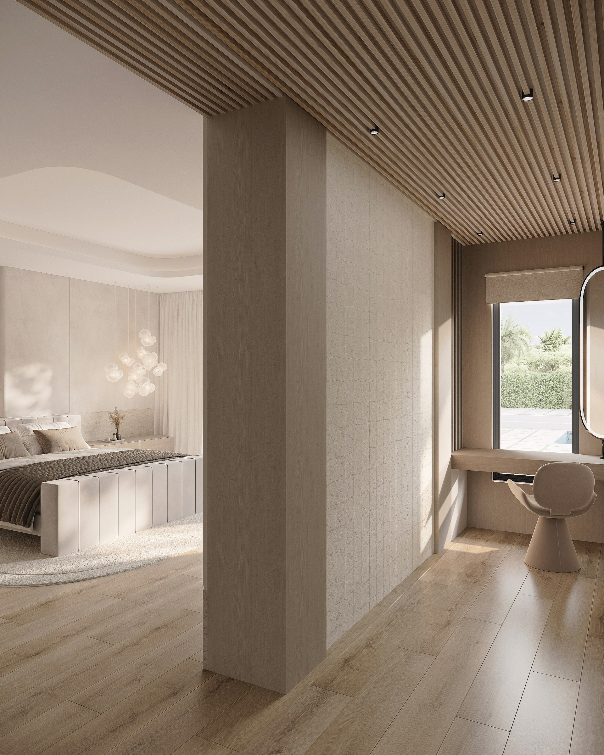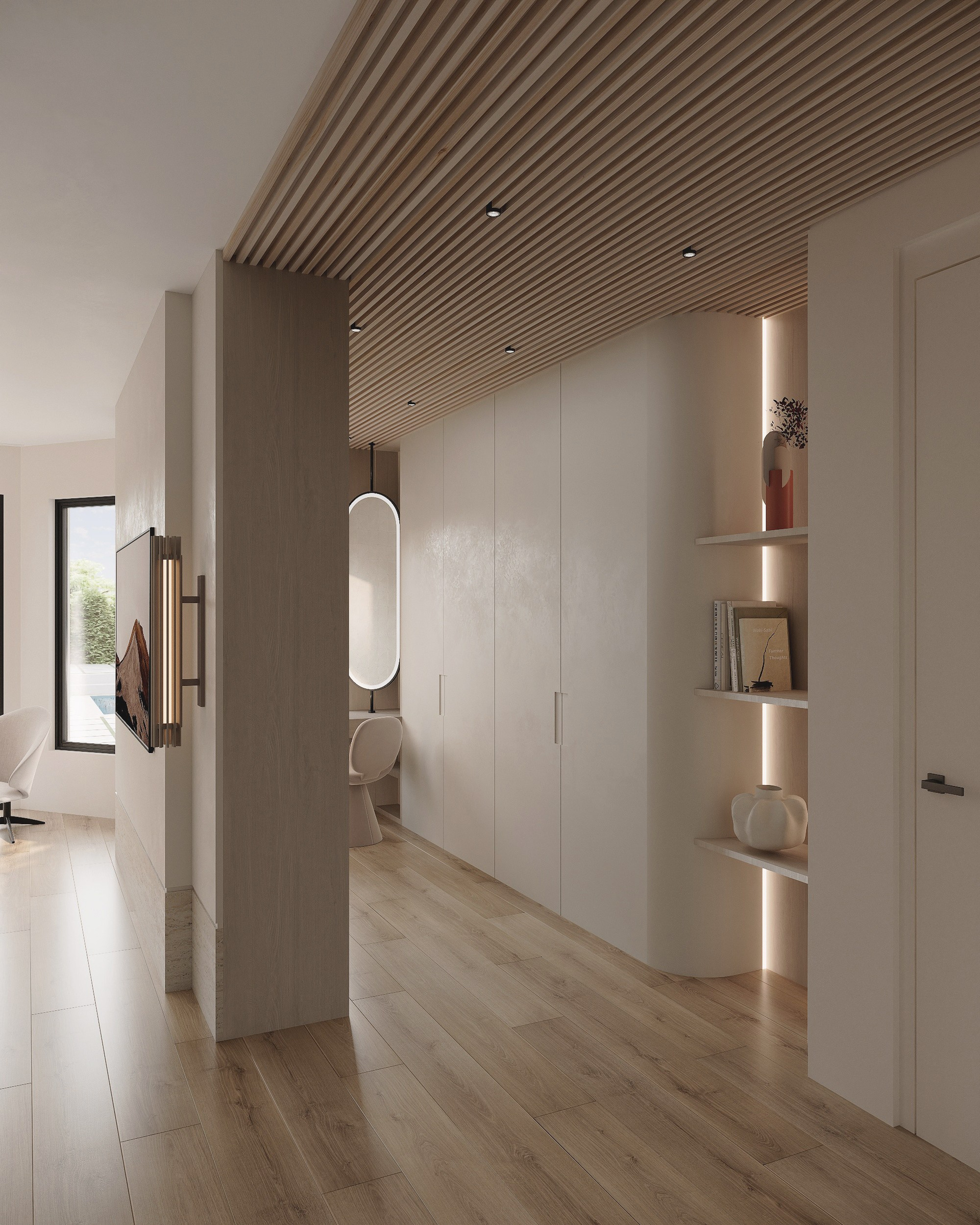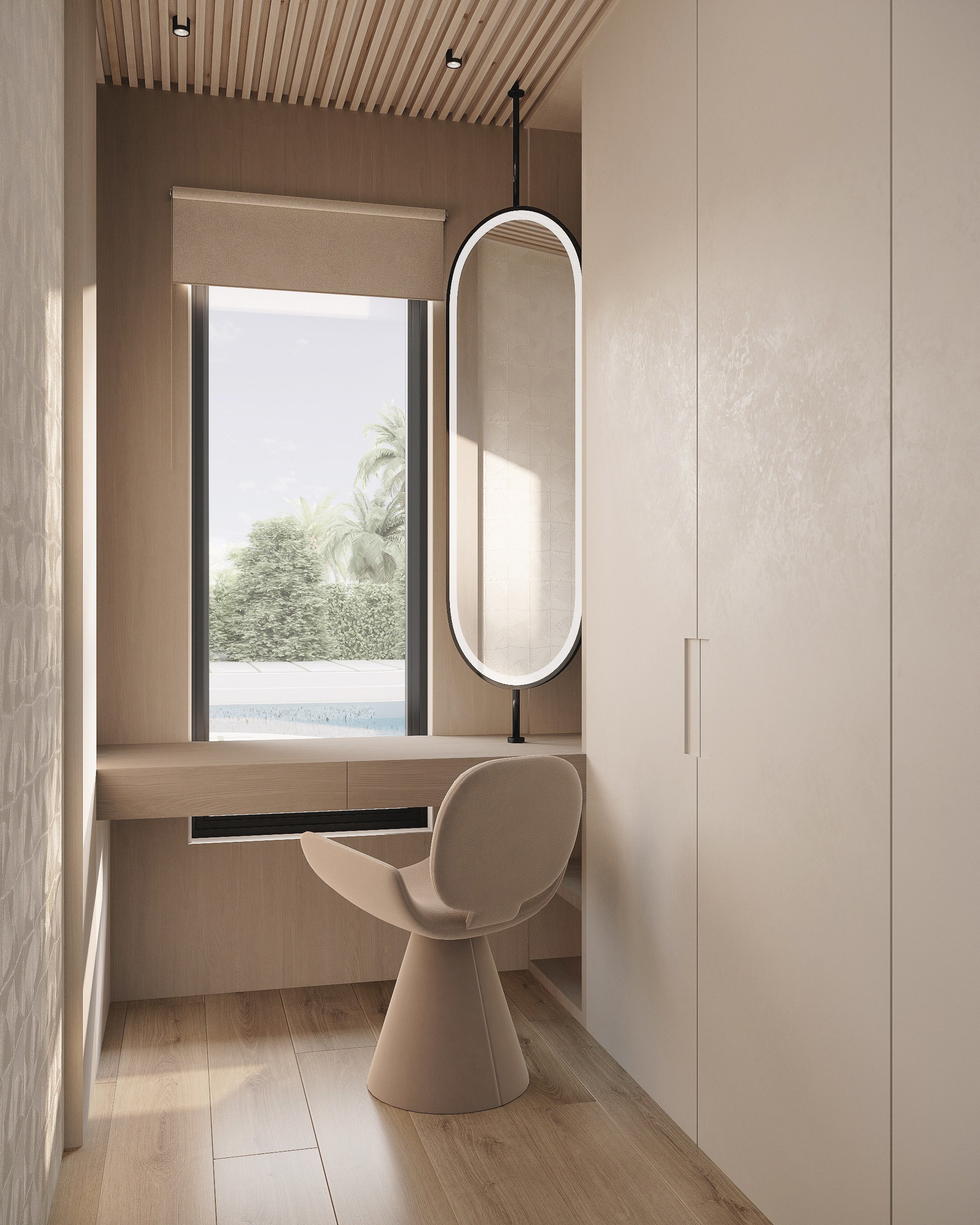 Bedroom interior in the spirit of neoclassicism and minimalism