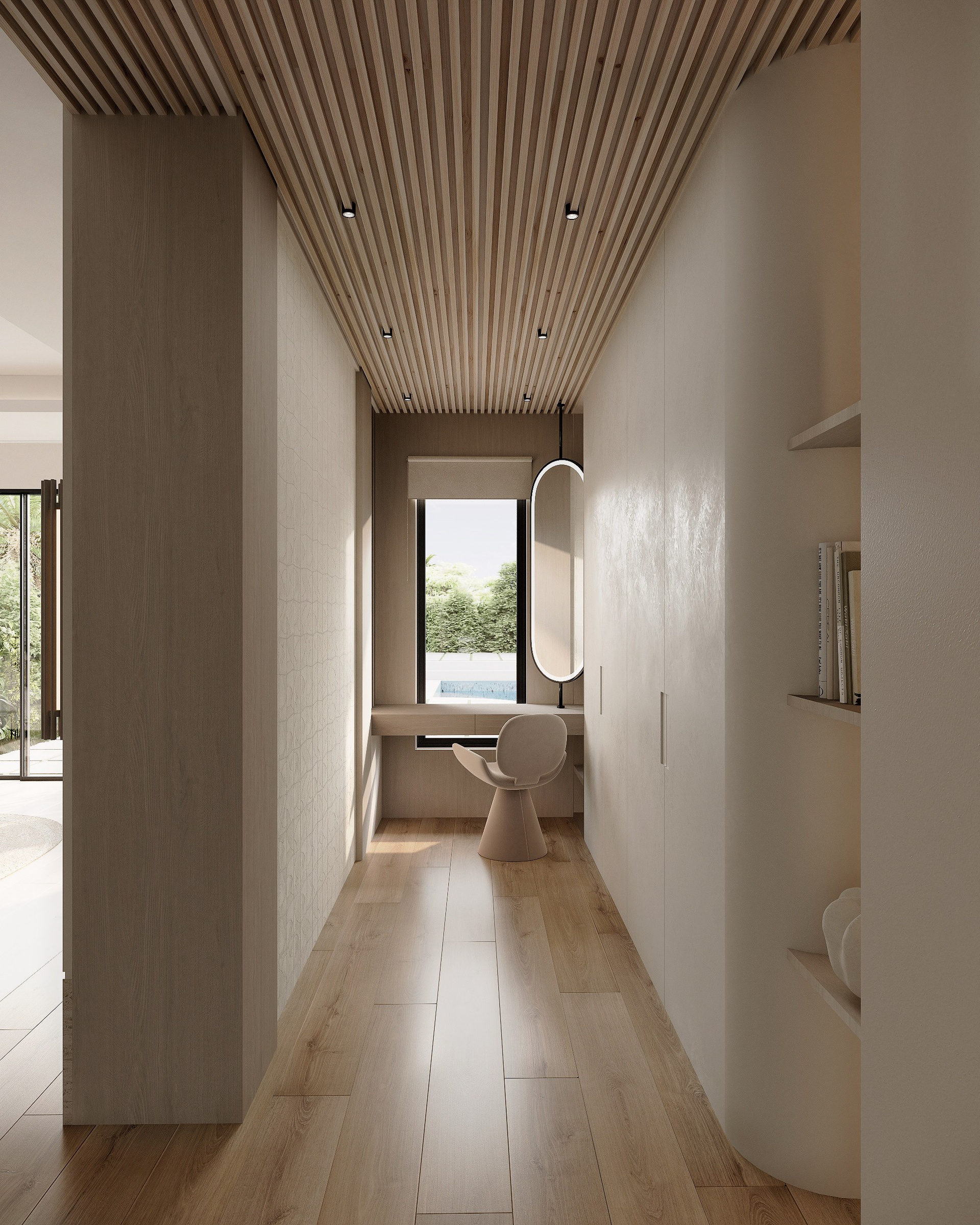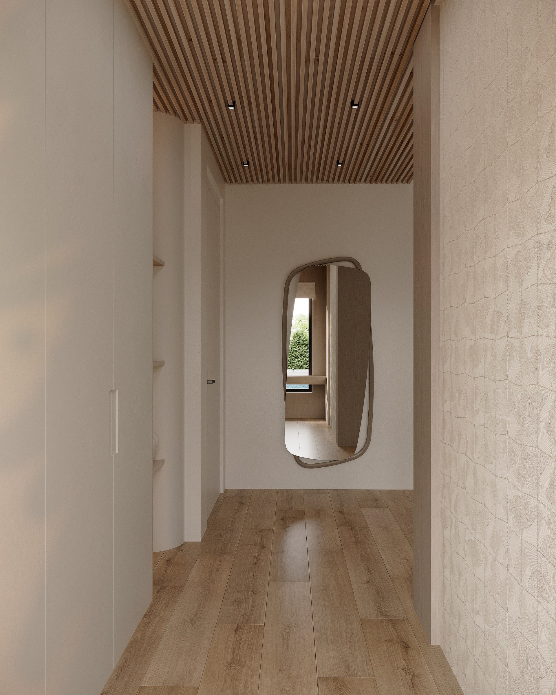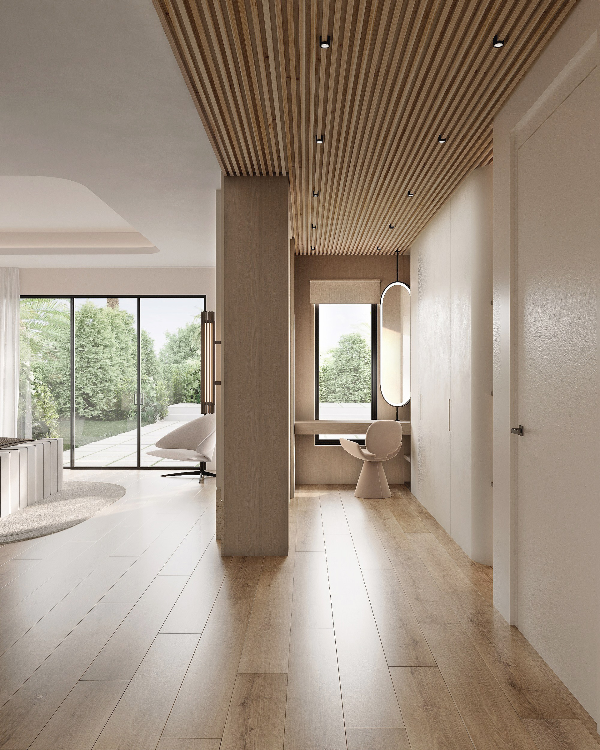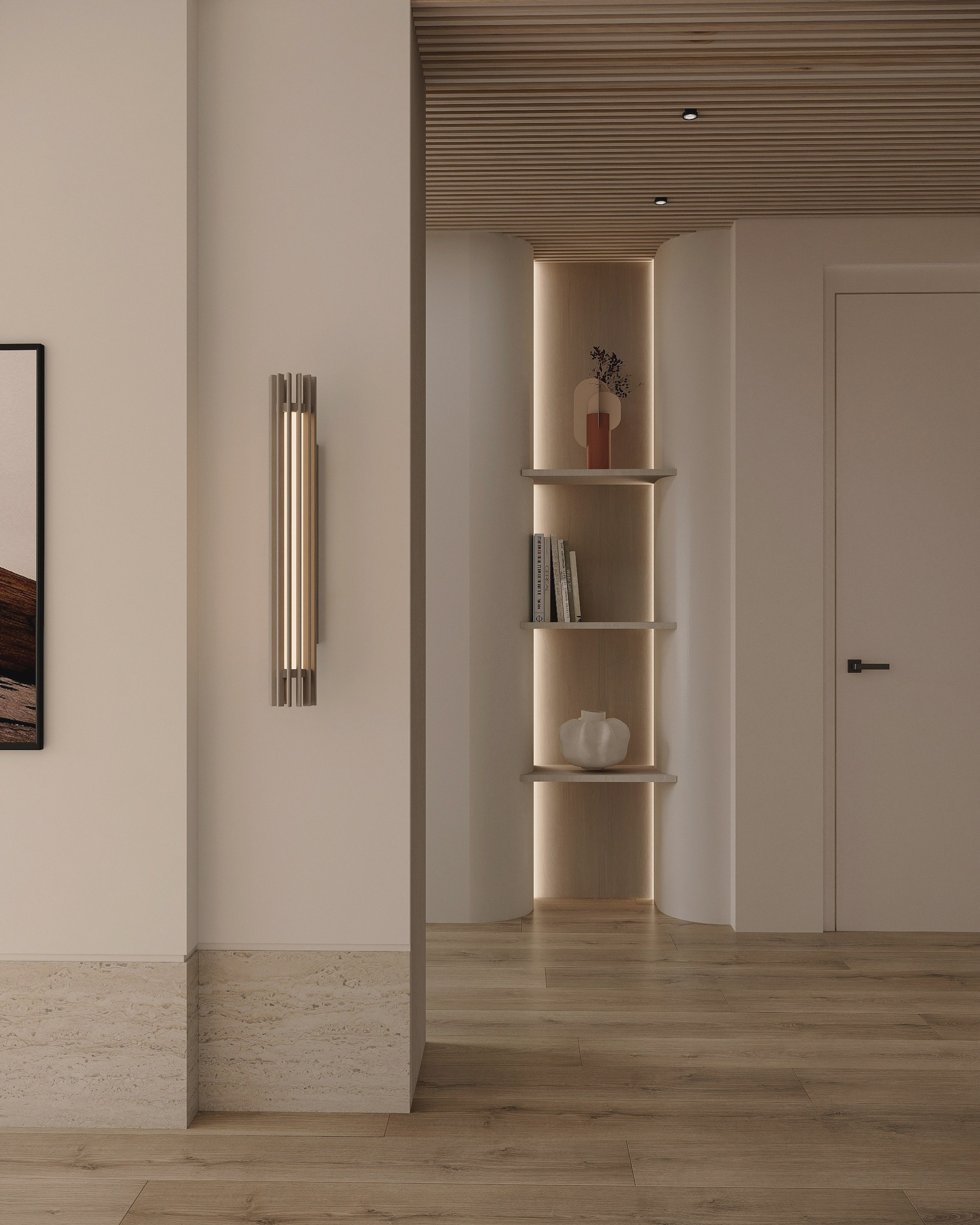 Bedroom interior in the spirit of neoclassicism and minimalism