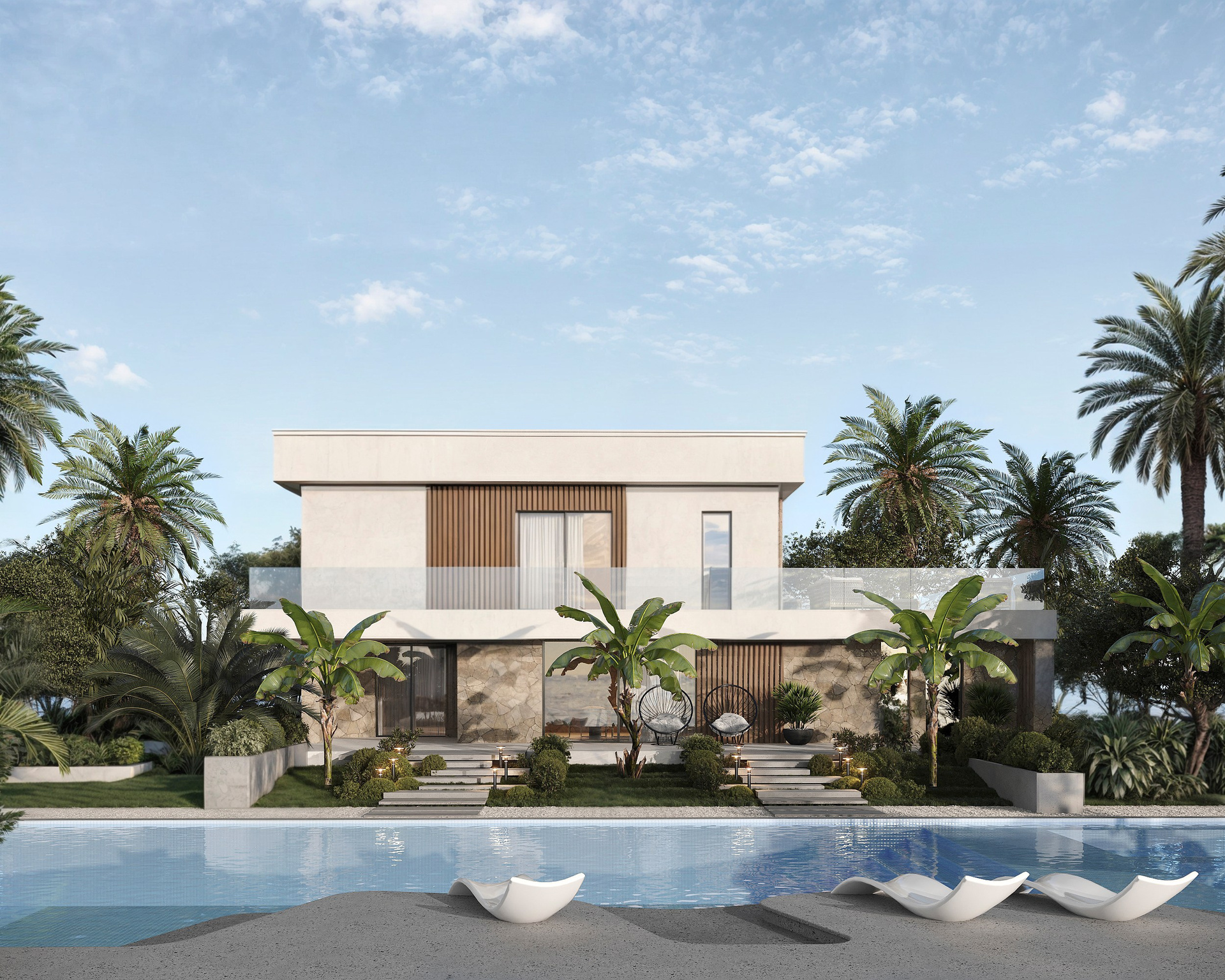 Bedroom interior in the spirit of neoclassicism and minimalism